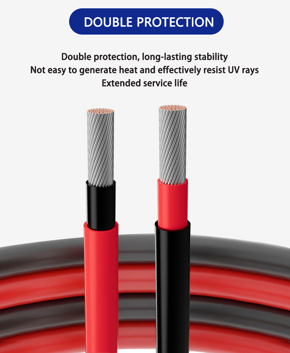 كابل شمسيهو كابل خاص يستخدم في أنظمة توليد الطاقة الشمسية ، بشكل رئيسي لمحطات الجهد المستمر ، وصلات الرصاص لمعدات توليد الطاقة ووصلات التقارب بين المكونات ، حتى 1.8 كيلو فولت تيار مستمر لأنظمة معدات توليد الطاقة الكهروضوئية. إنه مقاوم للطقس ، ومقاوم للبرد ، ومقاوم للحرارة العالية ، ومقاوم للاحتكاك ، ومقاوم للأشعة فوق البنفسجية ، ومقاوم للأوزون ، مع عمر عمل لا يقل عن 25 عامًا.
