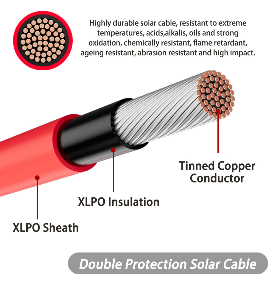 كابل تمديد الطاقة الشمسيةتُستخدم لتوصيل الطاقة الكهربائية بين الألواح الشمسية والمحولات. ضمان نقل مستقر للطاقة الكهربائية والتشغيل العادي لأنظمة توليد الطاقة الكهروضوئية. معتمد لمعايير TUV/UL/EN/CQC.